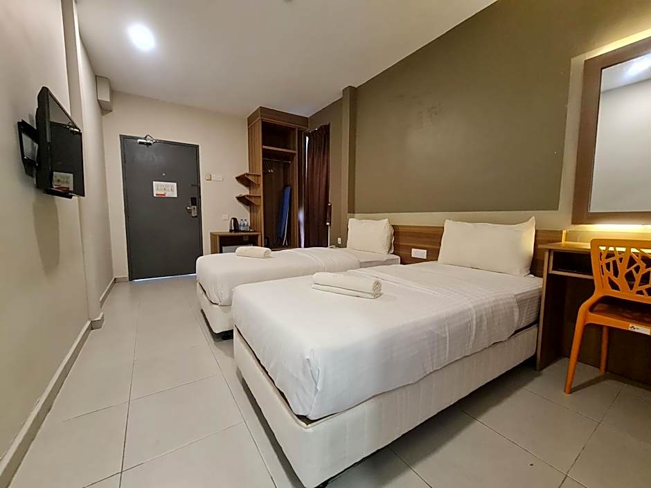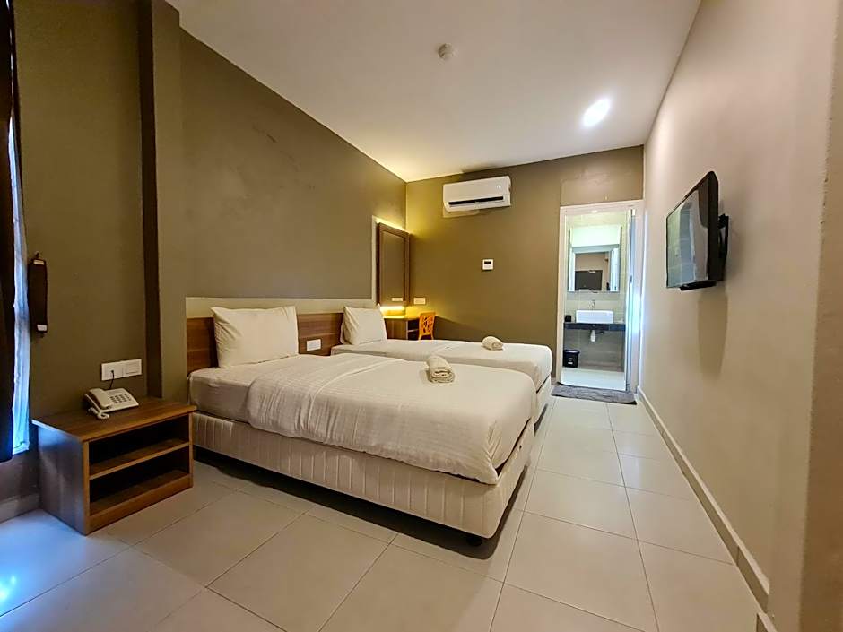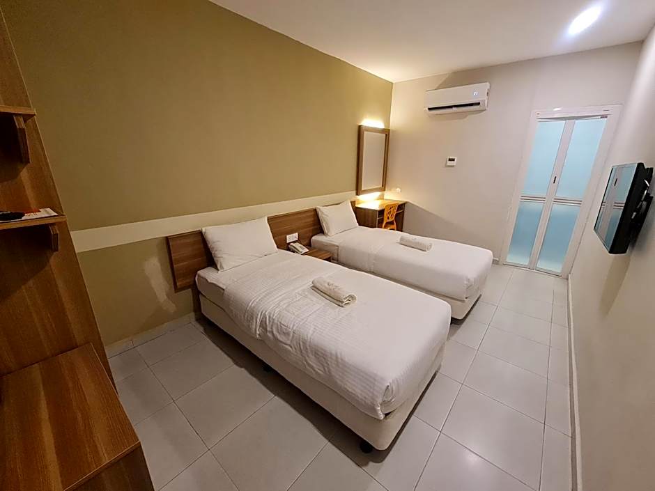 This twin room has air conditioning and soundproofing. Kettle and iron are upon request.